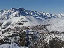 آلپ دوئز با طول ۲۴۹ کیلومتر و ۸۴ بالابر یکی از بزرگترین پیستهای جهان است. تجهیزات بزرگ برفساز با اثرات جنوبی بودن دامنه کوه مقابله میکند و باعث میشود که پیست برای اسکی بازان تازهکار جذاب باشد. بخش میانی با شیب متوسط به پیستهای دیگر اتصال مییابد و باعث افزایش مسافت قابل اسکی میشود؛ ولی جذابیت پیست بیشتر به خاطر شیب زیاد ارتفاعات بالای آن است که علاقهمندان اسکی آزاد را به سوی خود میکشد.