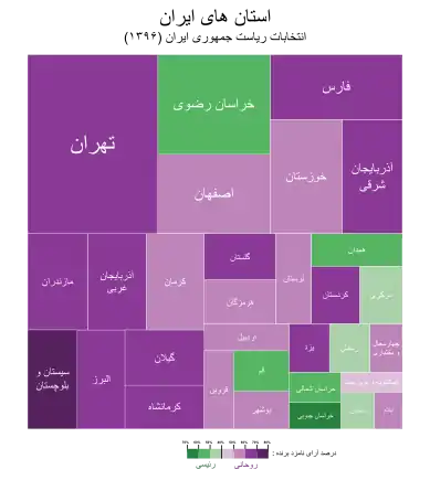 نتایج بر اساس استان (نمودار درختی). اندازه ی هر استان بر اساس جمعیتش است