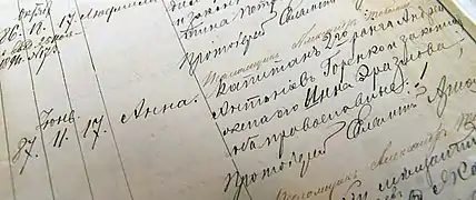 سیاههٔ ثبت نام و تاریخ تولد آنا آخماتووا در دفتر بایگانی سازمان ثبت احوال شهر اودسا