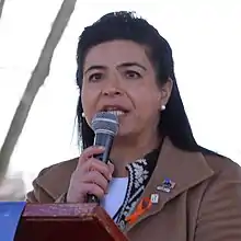 ![]() آنا کاپلان در یک تجمع در گریت نک، نیویورک سخنرانی میکند | |