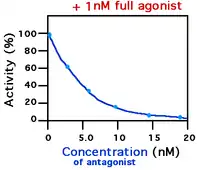 - آنتاگونیست رقابتی: هنگامیکه افزایش غلظت یک آنتاگونیست میتواند پاسخ به غلظتهای ثابت یک آگونیست را مهار کند. (مثلاً برخی شلکننده عضلات به عنوان آنتاگونیست رقابتی میتوانند، اثر آگونیست استیل کولین را خنثی کنند)
