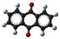 - اکسایش آنتراسن، واکنشی که در حلقه مرکزی رخ میدهد. کروم (VI) اکسیدکننده متداول در این واکنش است.