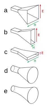 برای بهبود این ویژگیهای نامطلوب ، انتهای موجبر به سمت بیرون میآید و آنتن شکل میگیرد. بخش باریک آنتن، امپدانس را تدریجاً در امتداد طول آنتن تغییر میدهد.