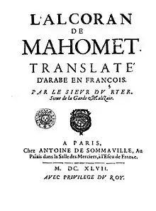 - André du Ryer, L'Alcoran de Mahomet, traduit de l'arabe en français, 1647