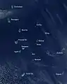 تصویر ماهوارهای نشاندهنده آبسنگ مرجانی لاکشادویپ به جز مینیکوی