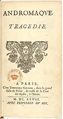 ![]() Title page from 1668 edition of Andromaque | |