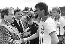 ![]() Thom receiving the East German Footballer of the Year award in ۱۹۸۸ | |||