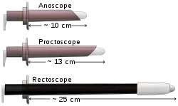 - راست روده (راست روده بینی) و مخرج (مخرج بینی)، هر دو نیز به عنوان (پروکتوسکوپی)