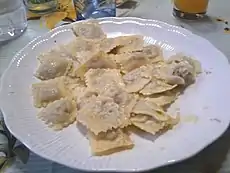 آرد و تخم مرغ را با یکدیگر ترکیب کرده و خمیر بهدست آمده را مدتی میگذارند تا استراحت کند. سپس آنرا با وردنه نازک کرده و بهصورت چهارگوشهایی ۵ سانتیمتری با کاتری دندانهدار یا صاف برش میزنند.[3] همچنین ممکن است این برشها به شکل دایره باشد.[1][2][4] سپس کمی از مایهٔ تهیهشده برای مغز پاستا را در مرکز خمیر قرار داده و دو لبهٔ خمیر را بر روی یکدیگر تا کرده و میبندند تا به شکل مستطیل یا نیمدایره درآید.[1][3][4] سپس آنها را در آبنمک فراوان میجوشانند.[3]