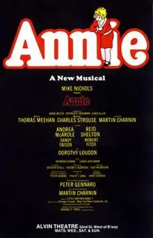 آنی (به انگلیسی: Annie) یک نمایش موزیکال تئاتر برادوی است که بر اساس کمیک استریپ محبوب هارولد گری با عنوان یتیم کوچولو آنی ساخته شدهاست، موسیقی آن توسط چارلز استروز، متن ترانههایش توسط مارتین چارنین و کتابش توسط توماس میهن است. اجرای این نمایش از سال ۱۹۷۷ در برادوی آغاز شد و نزدیک به شش سال ادامه داشت و رکوردی برای تئاتر آلوین (تئاتر نیل سایمون فعلی) به نام خود ثبت کرد.[1][2]