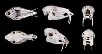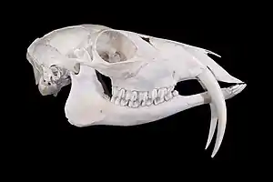 بارزترین ویژگی این گونه، دندانهای خونآشاممانندش و نیز سر شبیه به کانگوروی آن است. نوع نر آن این دندانهای جلو را به جای شاخ درمیآورد.[4]