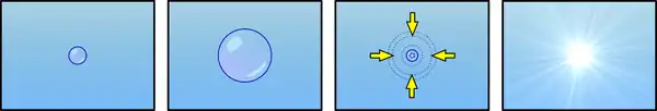 از چپ به راست: آشکاری حباب، گسترش آرام، تنجش ناگهانی و تند، گسیل روشنایی.