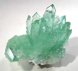 آپوفیلیت (Apophyllite)، این کانی به گروه فیلوسیلیکاتها برمیگردد، گروهی از کانیها که میکا را نیز در برمیگیرد. این کانی کمیاب است و در آلمان، نروژ، اسکاتلند، کانادا، ایرلند، هند، ژاپن، برزیل و در سراسر آمریکا یافت میشود. از خواص دیگر این کانی میتوان به ترد بودن آن و به لومینسانس سبز، سیاه یا آبی تیرهرنگ آن که در امتداد طولی مشاهده میشود، اشاره کرد.