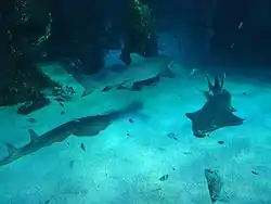 عمدهترین بخش نمایشی آکواریوم، تونل شیشهای آن است که به گونهای خاص، در زیر آب تعبیه شده و کوسههای عظیمالجثه و ماهیهای زیبا، از بالای سر بازدیدکنندگان عبور کرده و منظرهای شگفت انگیز را پدید میآورند. وزن برخی از این کوسهها به ۷۰۰ کیلوگرم و طول آنها به بیش از سه متر میرسد.