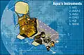 - مشارکتکنندگان ویکیپدیا. «Aqua (satellite)». در دانشنامهٔ ویکیپدیای انگلیسی، بازبینیشده در ۲۸ نوامبر ۲۰۱۴.