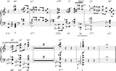 در شیوههای موسیقی کلاسیک، آکوردهای گسترش یافته اغلب عملکرد نمایان یا آکورد فرعی دارند، ممکن است به گام نسبی حل شود، یا با استفاده از دایره پنجمها به پایین و به همان روش حل، حل شوند، مانند: (V7 ،V7/ii ,V/IV) و غیره.
