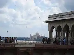 قلعهٔ آگره که همچنین به حصار سرخ و برای سرخی ان به لعل قلعه نیز مشهور است - توسط اکبر امپراتور بزرگ گورکانی ساخته شد. حیاط پر پیچ و خم، مسجد و تالار اختصاصی قلعه عظمت امپراتوری گورکانیان هند را منعکس میکند. مسجد موتی (موتی به معنی مروارید) و برج یاسمین نشان دهنده مهارت صنعتگران و معماران آن روزگار هند هستند. این بنا را با قلعه دیگری که به همین نام قلعه سرخ یا ردفورت مشهور است و در دهلی است نباید اشتباه گرفت.