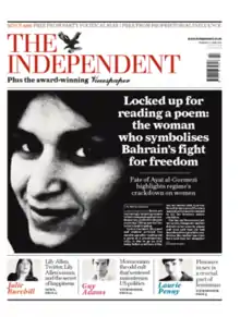 ![]() آیات القرمزی رو جلد ایندیپندنت به تاریخ ۲ ژوئن ۲۰۱۱ میلادی | |