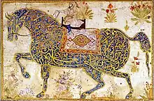 ![]() آیت الکرسی خطاطی شده به شکل اسب، مربوط به قرن شانزدهم در هند | |