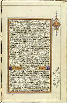 ![]() ورقی از قرآنی خطی متعلق به قرن هجدهم میلادی که آیه اخوت در آن مشهود است | |