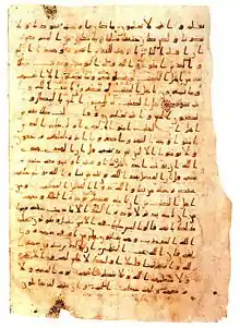 ![]() نسخهای قدیمی از سوره آل عمران که آیات پس از آیه مباهله را دربردارد | |