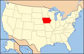![]() نقشه ایالتهای آمریکا همراه برجستهبودن آیووا | |||||