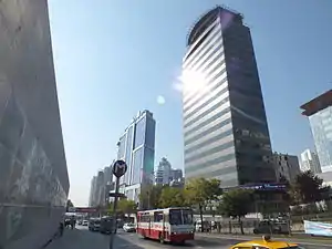 ![]() The Istanbul Metro sign with the skyscrapers of Maslak. | |
