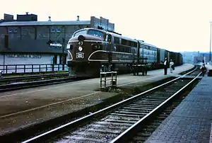 ![]() CRI&P #43 leads a freight train through Joliet in August 1963. | |