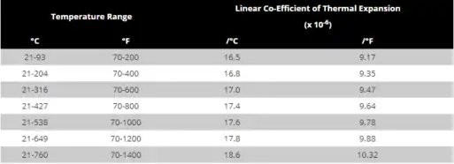 ضریب انبساط طولی آلیاژ A-286