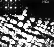 - فازهای کاربید: از این فازها در ابرآلیاژهای پایه نیکل به منظور پایدارسازی ساختار ماده در مقابل تغییر شکل در دماهای بالا استفاده میشود. کاربیدها در مرزدانه(grain boundary)ها تشکیل میشوند و از حرکت مرز دانهها جلوگیری میکنند.[6][7]