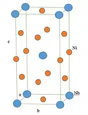 - گامازگوند ("γ): این فاز جهت افزایش استحکام ابرآلیاژهای پایه نیکل در دمایی پایینتر نسبت به فاز 'γ (یعنی دمای کمتر از ۶۵۰درجه سلسیوس) استفاده میشود. ساختار بلوری در این فاز، دستگاه بلوری تتراگونال(BCT) است. این ساختار ناهمسانگرد(anisotropic) حاصل یک نابرابری در ابعاد(lattice mismatch) بین ساختارهای تتراگونال(BCT) و مکعبی وجه پر(FCC) است. این فاز در حدود دمای ۶۵۰درجه سلسیوس ناپایدار است.[9]