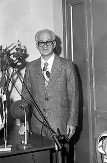 ![]() صفایی در دفتر کار خود، تهران، دهه ۱۹۷۰م | |