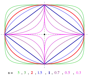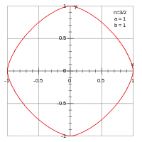 ![]() ابربیضی با n = ½, a = b = 1 | |