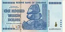 در اواخر آوریل ۲۰۰۸ ارزش تقریبی هر دلار آمریکا برابر با ۲۱۱۲۳۲ دلار زیمبابوه بود. بعد از مدتی بانک مرکزی زیمبابوه اسکناسهای جدید ۱۰۰ میلیارد دلاری منتشر ساخت و دولت زیمبابوه تعریف جدیدی از واحد پول خود کرد و با حذف ۱۰ صفر از آن هر دلار جدید زیمبابوه برابر با ۱۰ میلیارد شد خلاصه آن که زیمبابوه نرخ تورم ۱۱۲۵۰۰۰۰ درصد را تجربه کرد و این اتفاقات همواره در تاریخ بیاد خواهدماند.[11]
