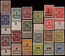برای پرداخت هزینههای کلان جنگ جهانی اول که در جریان بود، آلمان هنگام شروع جنگ، استاندارد طلا (قابلیت تبدیل پول خود به طلا) را به حالت تعلیق درآورد. بر خلاف فرانسه، که اولین مالیات بر درآمد خود را برای پرداخت هزینههای جنگ وضع کرد، ویلهلم دوم امپراتور آلمان و رایشتاگ (مجلس) تصمیم گرفتند که جنگ را بهطور کامل با وام گرفتن تأمین کنند،[1] تصمیمی که توسط کارشناسان مالی مانند یالمار شاخت مورد انتقاد قرار گرفت و آن را یک ریسک خطرناکی برای کاهش ارزش پول دانست.[2]