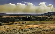 آتشسوزی در پارک ملی یلوستون آمریکا که ایجاد ابرهای آتشکومهای کردهاست.
