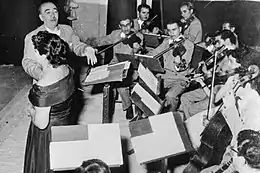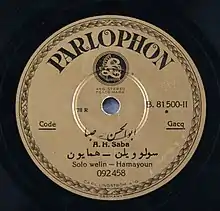 ابوالحسن صبا در زمستان سال ۱۳۱۴ ه.ش با دعوت «م. ارسطوزاده» (موسی ارسطوزاده) که نمایندهٔ شرکت «کلمبیا» در ایران بود[37]، بهمنظور ضبط موسیقی، همراه با هنرمندانی همچون مرتضی محجوبی، ملوک ضرابی، جواد بدیعزاده و حسینقلی طاطایی، راهیِ سوریه و لبنان شد. در این سفر صفحههای برخی دیگر از آثار صبا، همچون «زنگ شتر»، «همایون» و «چکاوک» (تکنوازیهای ویلن) و «بیات اصفهان» در «کمپانی سودوا»∗ واقع در سوریه، ضبط شد. صبا همچنین قطعاتی را همراه با پیانونوازیِ فرهاد معتمد به ضبط رساند.[5]