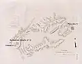 نقشه کشیده شده توسط لپسیوس از موقعیت هرم جدفرع در ۱۸۴۲