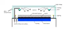 در اینجا اتاقهای ابر فشاری مورد بحث قرار میگیرند. محفظهای ساده از محیط محفوظ، یک صفحه گرم و یک ورق سرد سرد (نگاه کنید به شکل ۲). این منبع الکتریسیته مایع در طرف گرم اتاق که در آن مایع تبخیر میشود نیاز به تشکیل یک بخار دارد که از طریق گاز از بین میرود و در صفحهٔ سرد سرد میشود. نوعی اشعه یونیزهای مورد نیاز است.