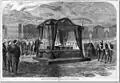 مراسم خاکسپاری و وداع با رئیس جمهور لینکلن در اتاق شرق (مجله هارپرس) ۱۸۶۵