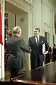 ریگان و گورباچف در اتاق شرق، پس از امضای پیمان تاریخی (INF)