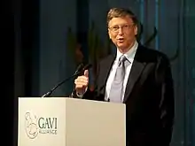 بیل گیتس در سخنرانی در مراسم سوگند GAVI در انگلیس در ژوئن ۲۰۱۱