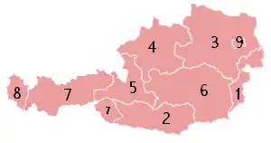 اتریش، که یک جمهوری فدرال است، ۹ ایالت را در بر میگیرد: