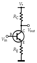 یک ترانزیستور NPN که به صورت اتصال امیتر مشترک با مقاومت امیتر بسته شده است.