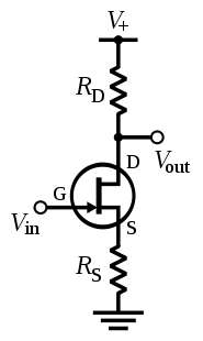 ساختار مشابه این اتصال در ترانزیستور پیوندی دوقطبی، اتصال امیتر مشترک است.