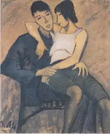 دو عاشق (لیبسپار)، حوالی ۱۹۱۴، ، تکنیک چسب رنگ، ۱۰۱٫۵ × ۸۳٫۵ سانتی متر، مجموعه خصوصی