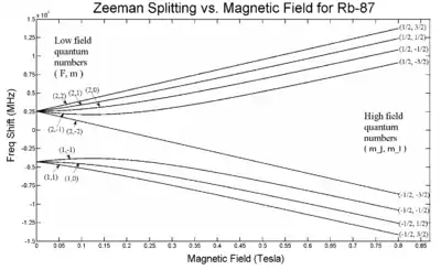 در بیشتر اتمها آرایشهای الکترونی بسیاری هستند که انرژی یکسانی دارند. ولی در حضور یک میدان مغناطیسی این تبهگنی به هم میخورد، زیرا الکترونهایی که اعداد کوانتومی متفاوت دارند، از میدان مغناطیسی به شکلهای متفاوتی اثر میپذیرند. از این رو، با این که در آغاز اتمهای بسیاری انرژی یکسان داشتند، حالا انرژیهای گوناگونی داریم و این باعث میشود خطوط طیفی تازهای داشته باشیم که البته بسیار به هم نزدیک هستند. اثر زیمان ،یعنی قرار نگرفتن اتم های هیدروژن یا هیدروژن گونه( تک الکترونی) در میدان مغناطیسی یکنواخت، که گاهی اثر بی هنجار زیمان نیز نامیده میشود و در آن اسپین الکترون نیز به حساب آورده می شود.[1]