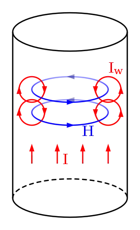 اثر پوستی پدیدهای است که در خطوط انتقال برق یا مخابرات که جریانهای متناوب (با فرکانسهای کم یا زیاد) را منتقل میکنند، رخ داده و منجر به کاهش چگالی جریان در مرکز (محور) سیم و افزایش آن در لایههای بیرونی یا پوسته سیم میشود. زمانی که جریان متناوب از یک سیم عبور میکند، یک میدان مغناطیسی در دور سیم ایجاد میگردد. با تغییر جهت جریان متناوب، جهت میدان ایجاد شده نیز تغییر میکند. در این زمان طبق قانون لنز جریانی در جهت مخالف جریان عادی، در سیم ایجاد میشود تا با تغییر میدان مخالفت کند. به این جریانهای پراکنده در سیم، جریان گردابی میگویند. این جریان در لایههای مرکزی سیم بیشتر و در لایههای بیرونی کمتر است، بهطوریکه گاهی جریان خالص در مرکز (محور) سیم برابر صفر شده [1] و در لایههای بیرونی یا پوسته تمرکز پیدا میکند. به همین سبب به آن اثر پوستی (Skin Effect) گفته میشود.