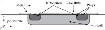 سطح مقطع شماتیک مقطع از مولفههای اساسی سیلیکون پیزومقاومتی نوع n-well .