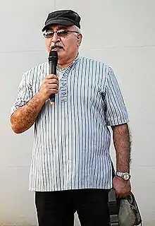 ![]() طالبینژاد در مراسم تشییع جنازهٔ ایرج کریمی | |